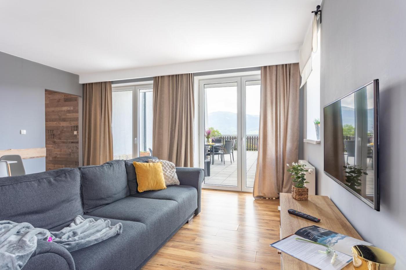 Apartament z 1 sypialnią. This apartment features 1 living room, 1 separate bedroom and 1 bathroom with a shower and a hairdryer. Guests can make meals in the kitchenette that has a stovetop, a refrigerator, kitchenware and a microwave. Boasting a terrace with mountain views, this apartment also features a washing machine and a flat-screen TV. The unit has 2 beds. Apartament - 4 osobowy. Powierzchnia pokoju ok.: 45 mkw.