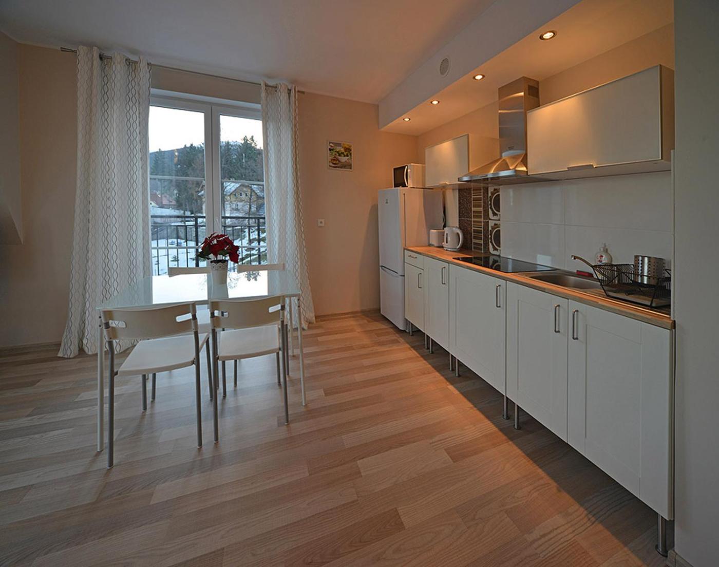 Apartament z widokiem na góry. This apartment includes 1 living room, 1 separate bedroom and 1 bathroom with a shower and a hairdryer. In the well-equipped kitchenette, guests will find a stovetop, a refrigerator, a dishwasher and kitchenware. This apartment has a tea and coffee maker, flat-screen TV, mountain views, as well as winechampagne for guests. The unit has 2 beds. Apartament - 4 osobowy. Powierzchnia pokoju ok.: 40 mkw. ;