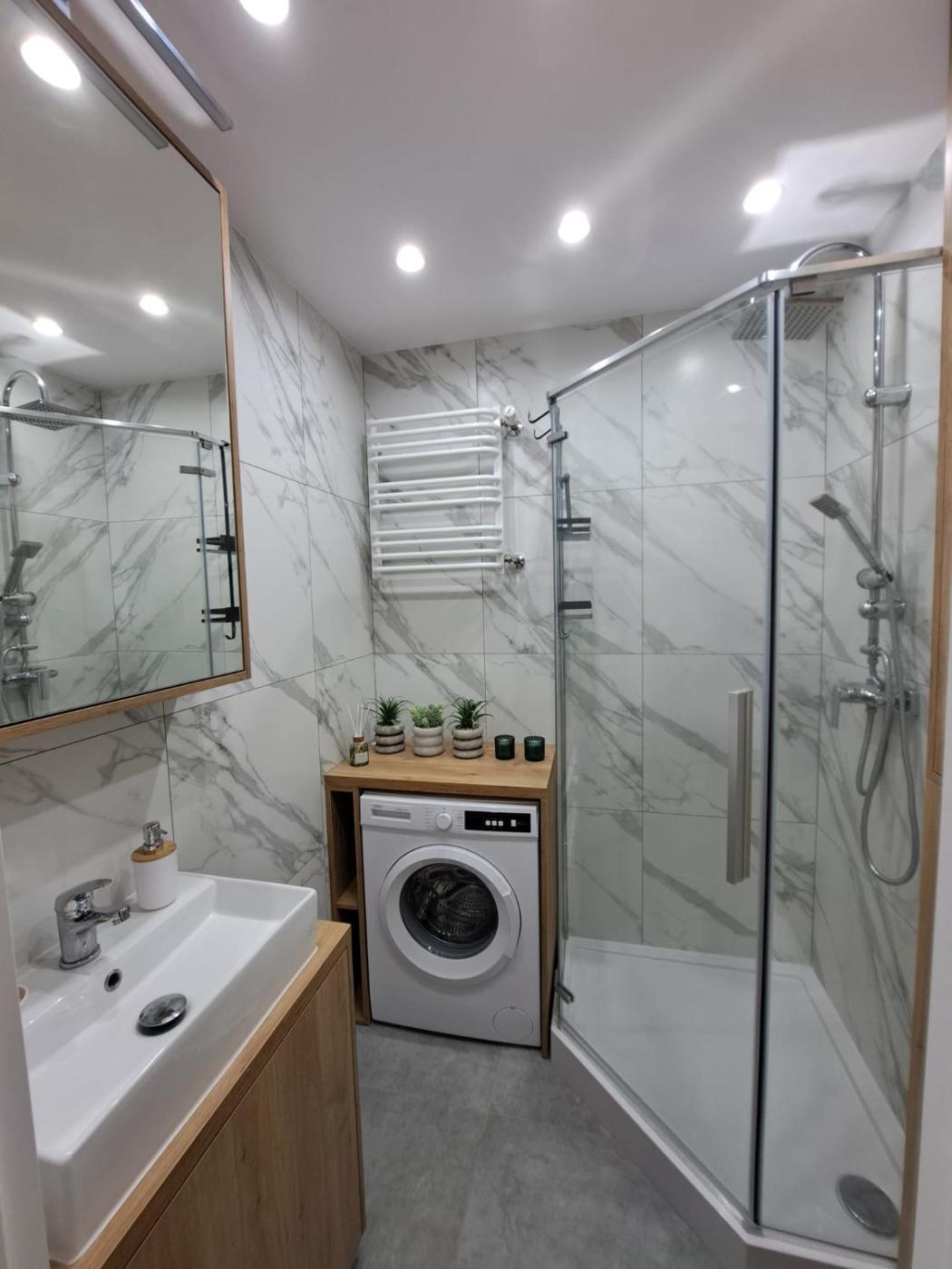 Apartament typu studio. The apartment offers a tea and coffee maker, a dining area, as well as a private bathroom boasting a shower and a hairdryer. Guests can make meals in the kitchen that has a stovetop, a refrigerator, a dishwasher and kitchenware. The apartment features a washing machine, a private entrance, soundproof walls, a flat-screen TV with streaming services, as well as city views. The unit has 1 bed. Apartament - 2 osobowy. Powierzchnia pokoju ok.: 36 mkw.